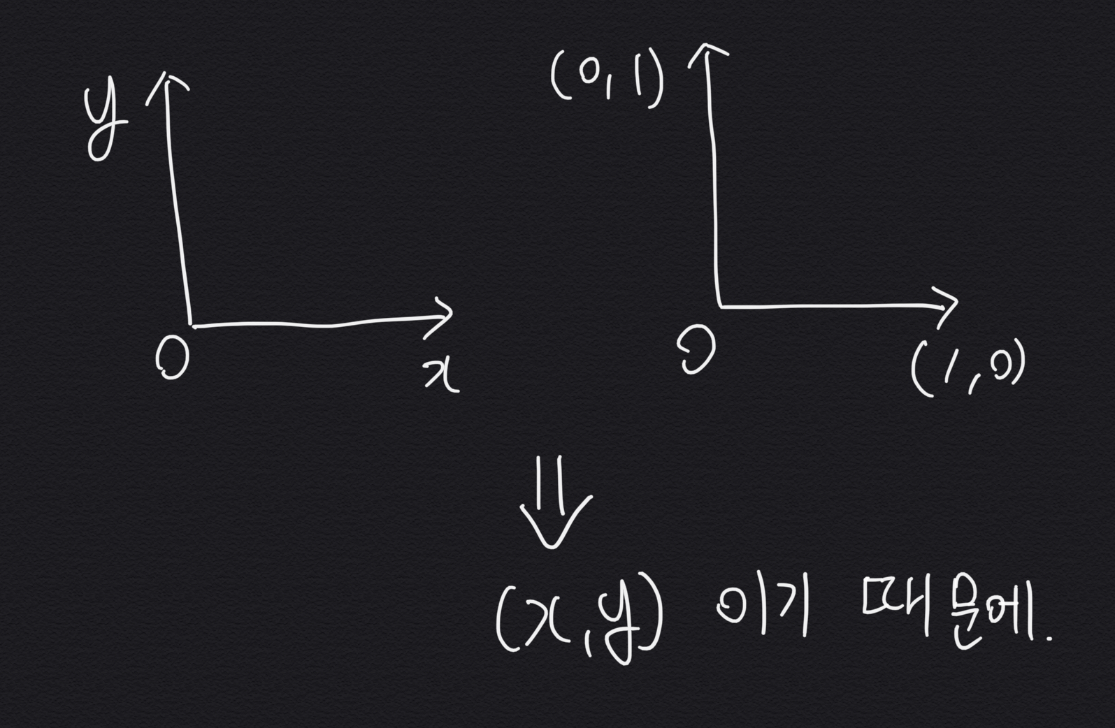 X축을 (1, 0) 으로 Y축을 (0, 1)로 표현을 하였다. 이렇게 표현을 한 이유는