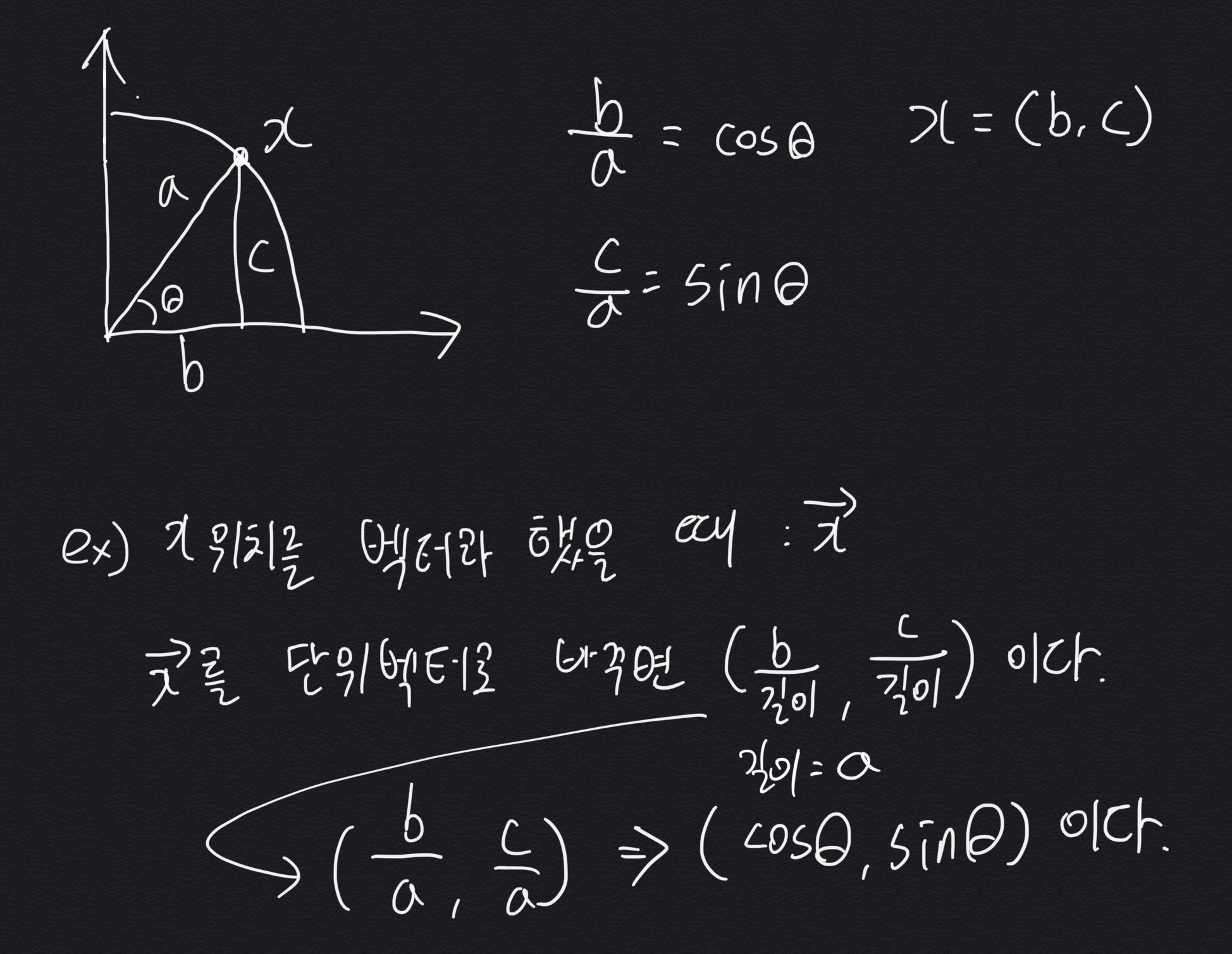 제일 먼저 식을 보았을 때 (cos, sin) 이 1사분면에서 하나의 점으로 표현이 가능 하다는 것을 알아야 한다.