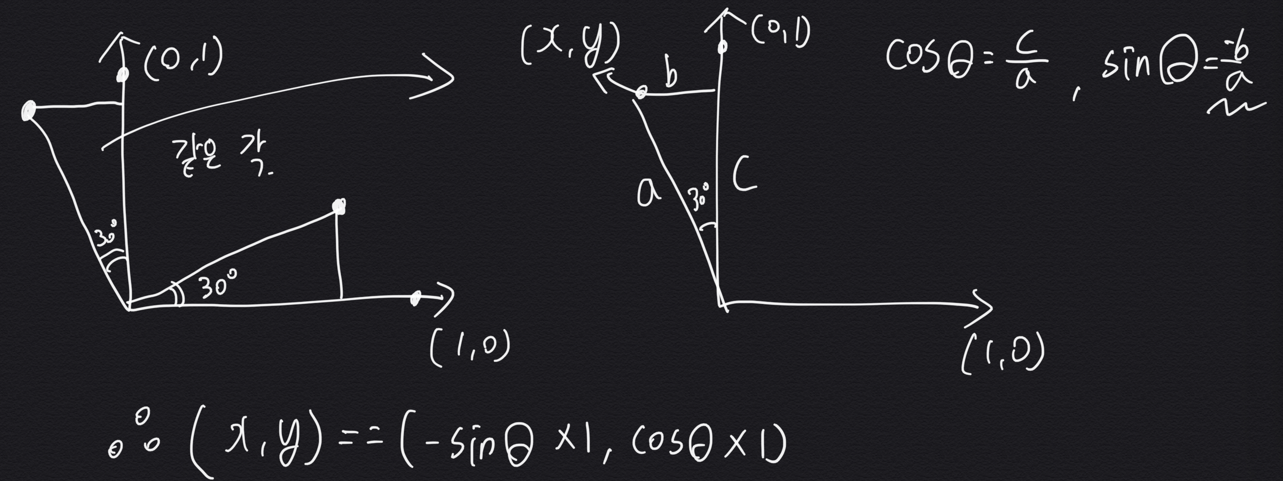 그래서 Y축의 값의 변환은 (-sin, cos)이 되는 것이다.