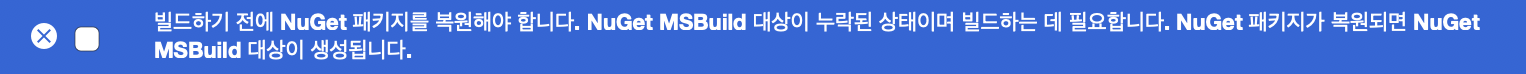결과물은 Build Fail. 사유는 MSBuild 또는 패키지를 복원할 수 없다고 출력이 된다.